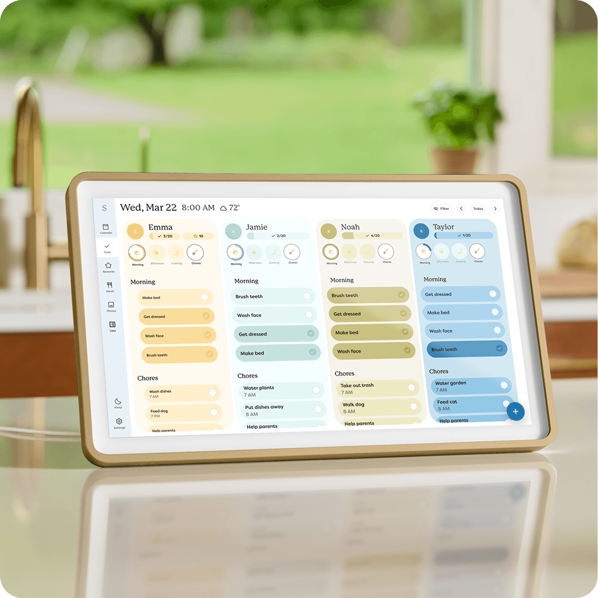 A smart display designed as a central home scheduling hub with a highly visible and engaging household interface. However it's dependent on hardware and lacks flexible digital controls.