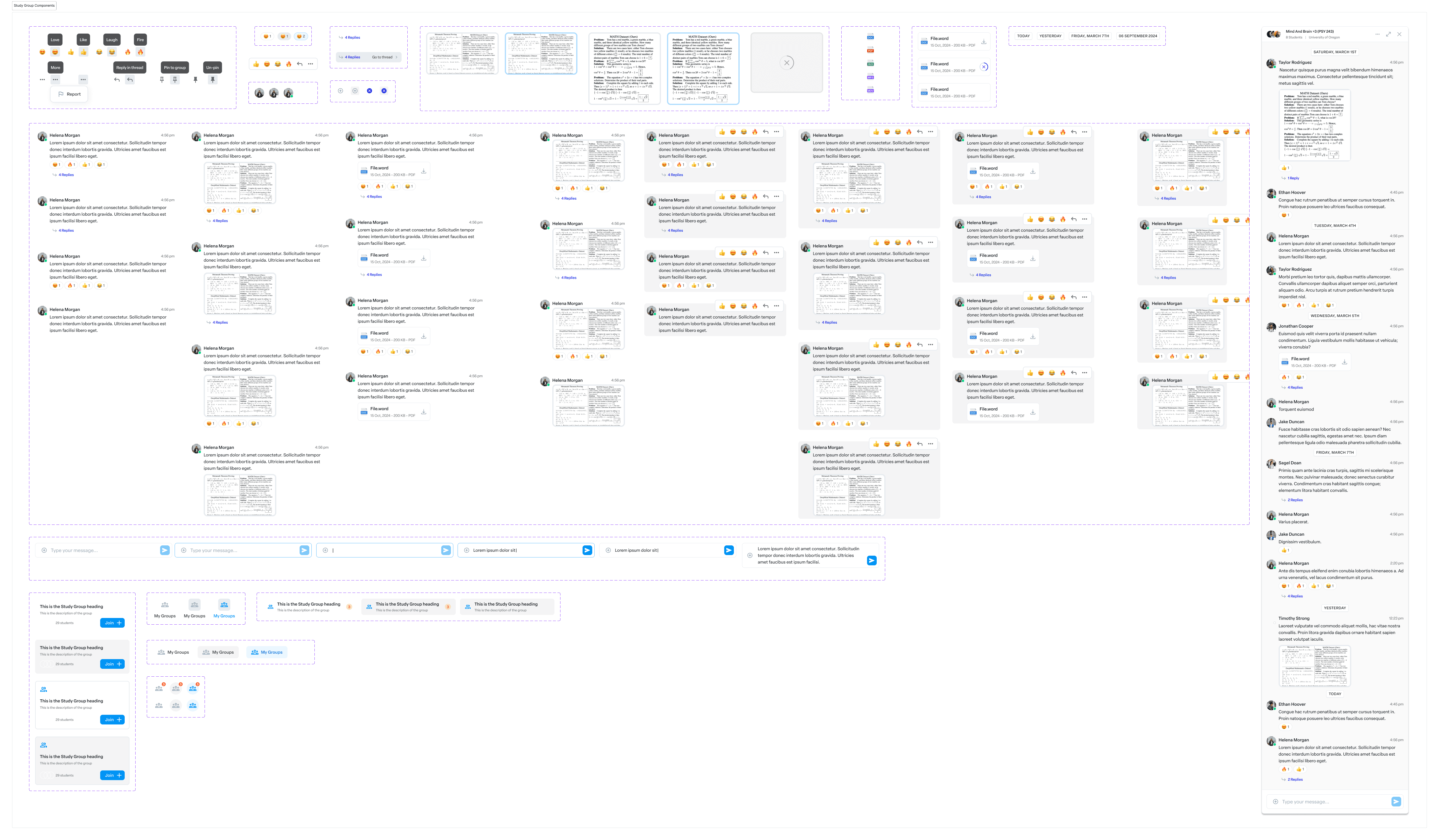 Study Groups required a scalable component system to support real-time collaboration. I designed reusable components for chat, reactions, threads, uploads, content previews, moderation, and system states, all built to integrate seamlessly with Numerade’s existing design system.
