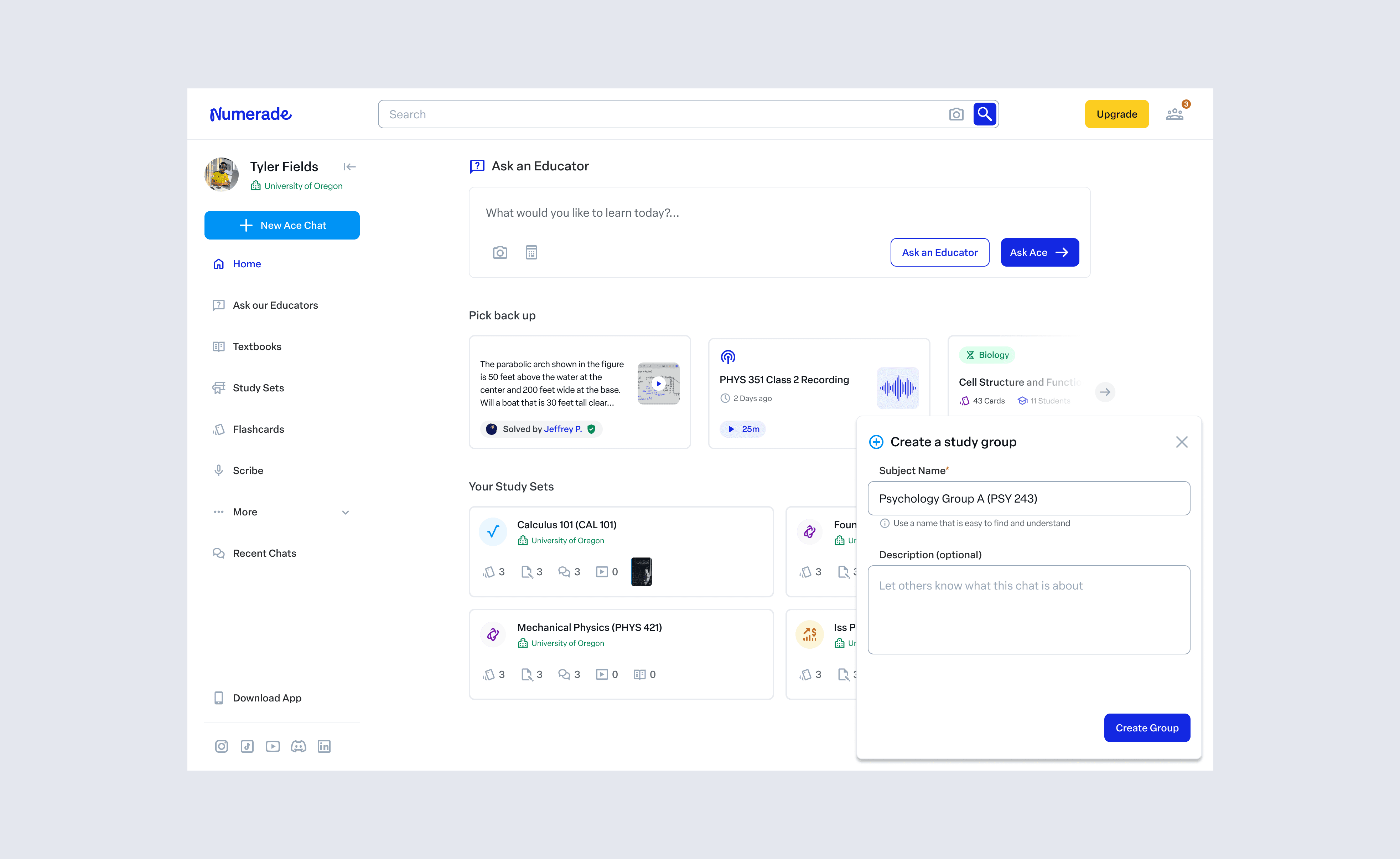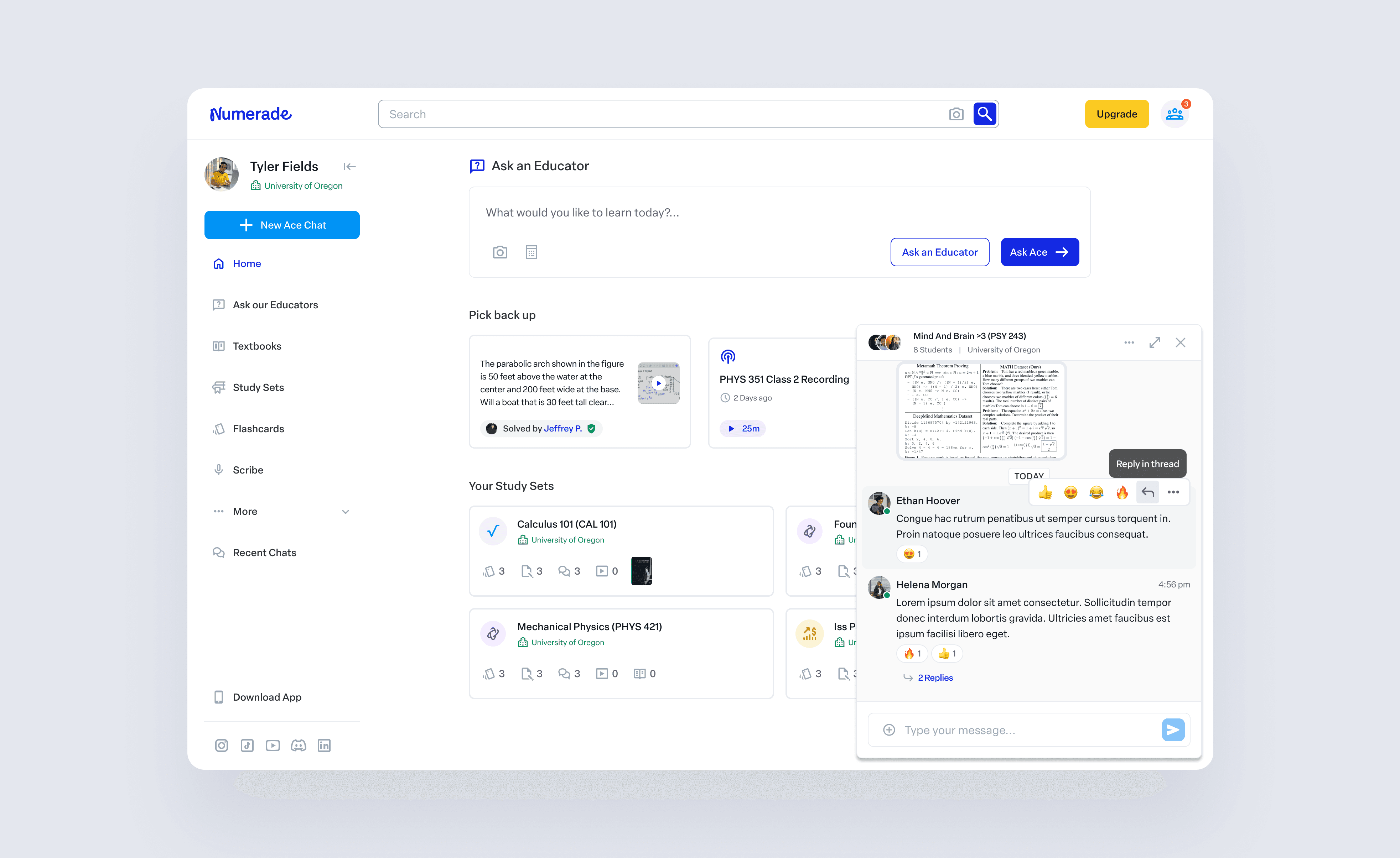 Existing Numerade usage patterns (solo study, transactional Q&A)